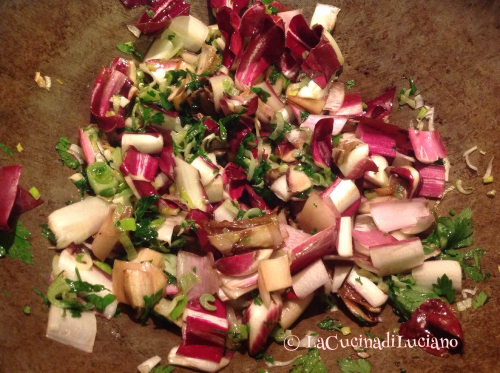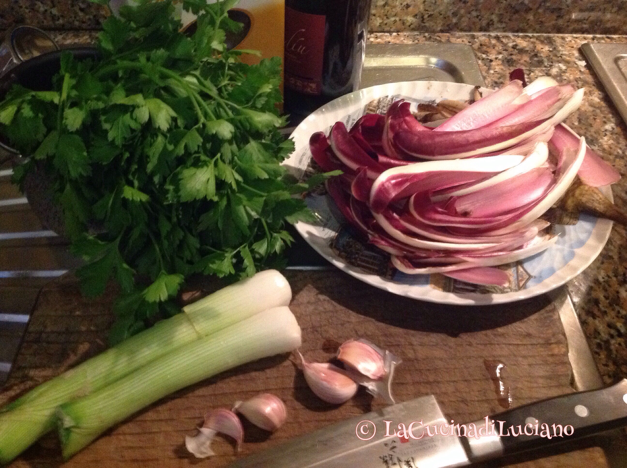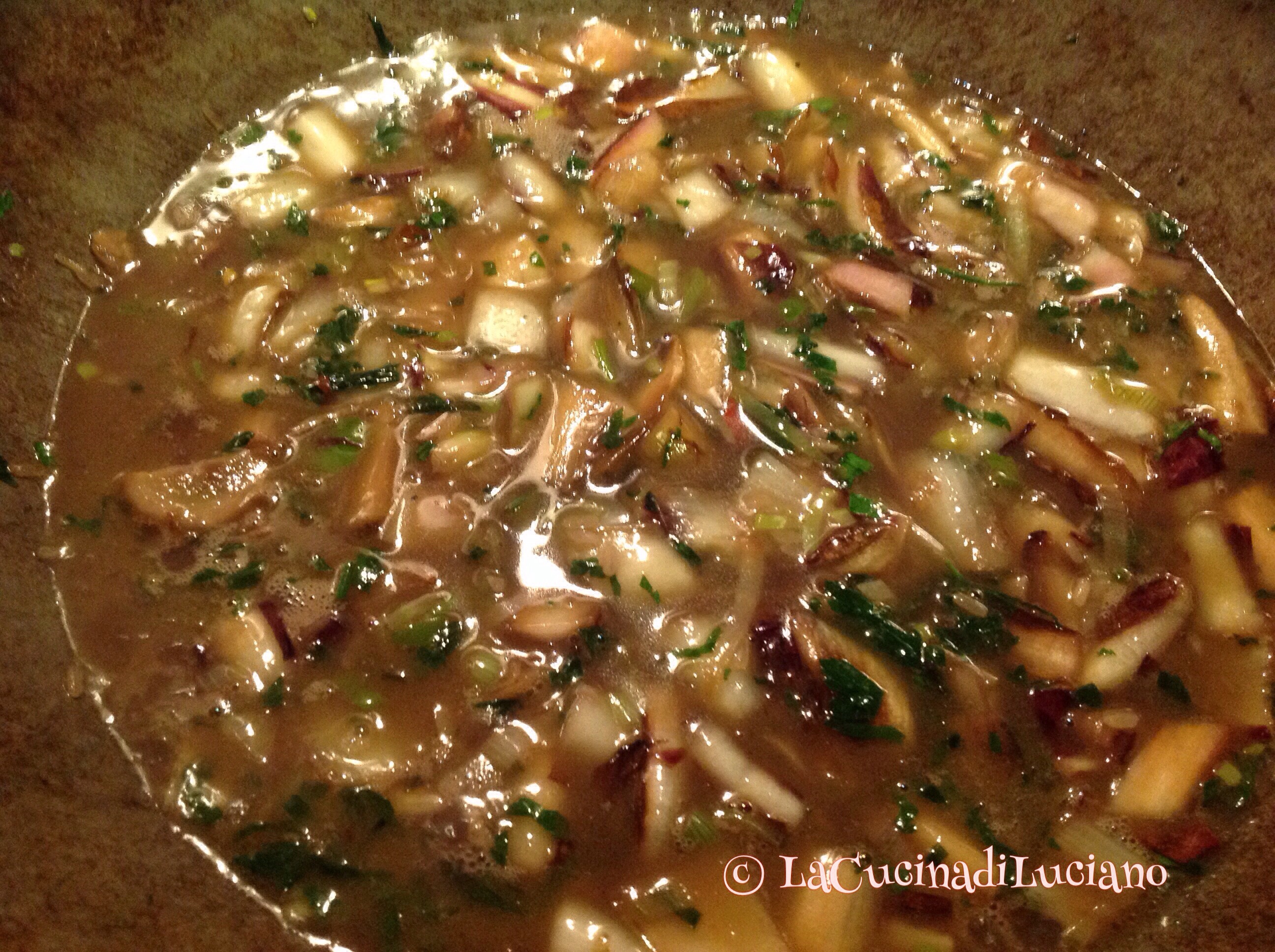 Unisci, a fuoco spento un po’ di prezzemolo fresco se volete,   copri , lascia riposare per alcuni minuti e servi caldissimo.