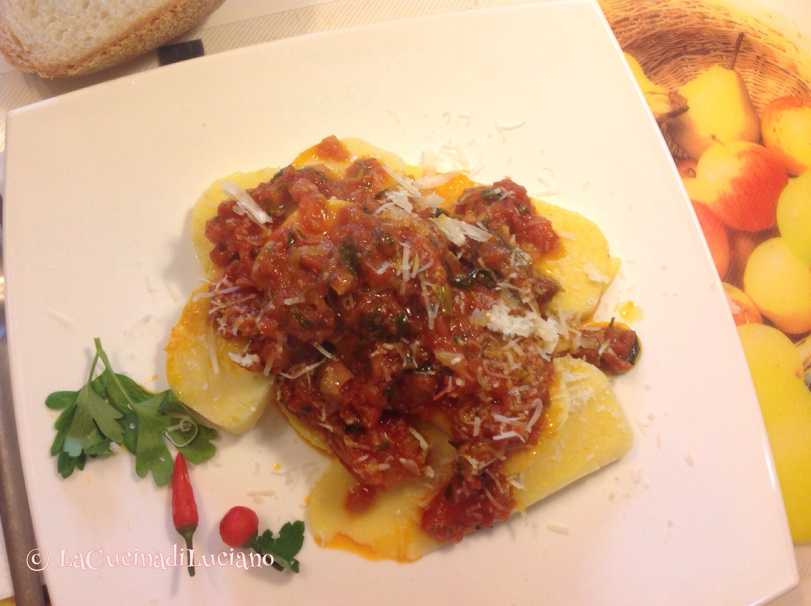 Cuoci fino a quando non vengono a galla, toglili dall’acqua condiscili con il sugo e del pecorino grattugiato e falli insaporire qualche minuto con il condimento. Lascia riposare per alcuni minuti e servi.