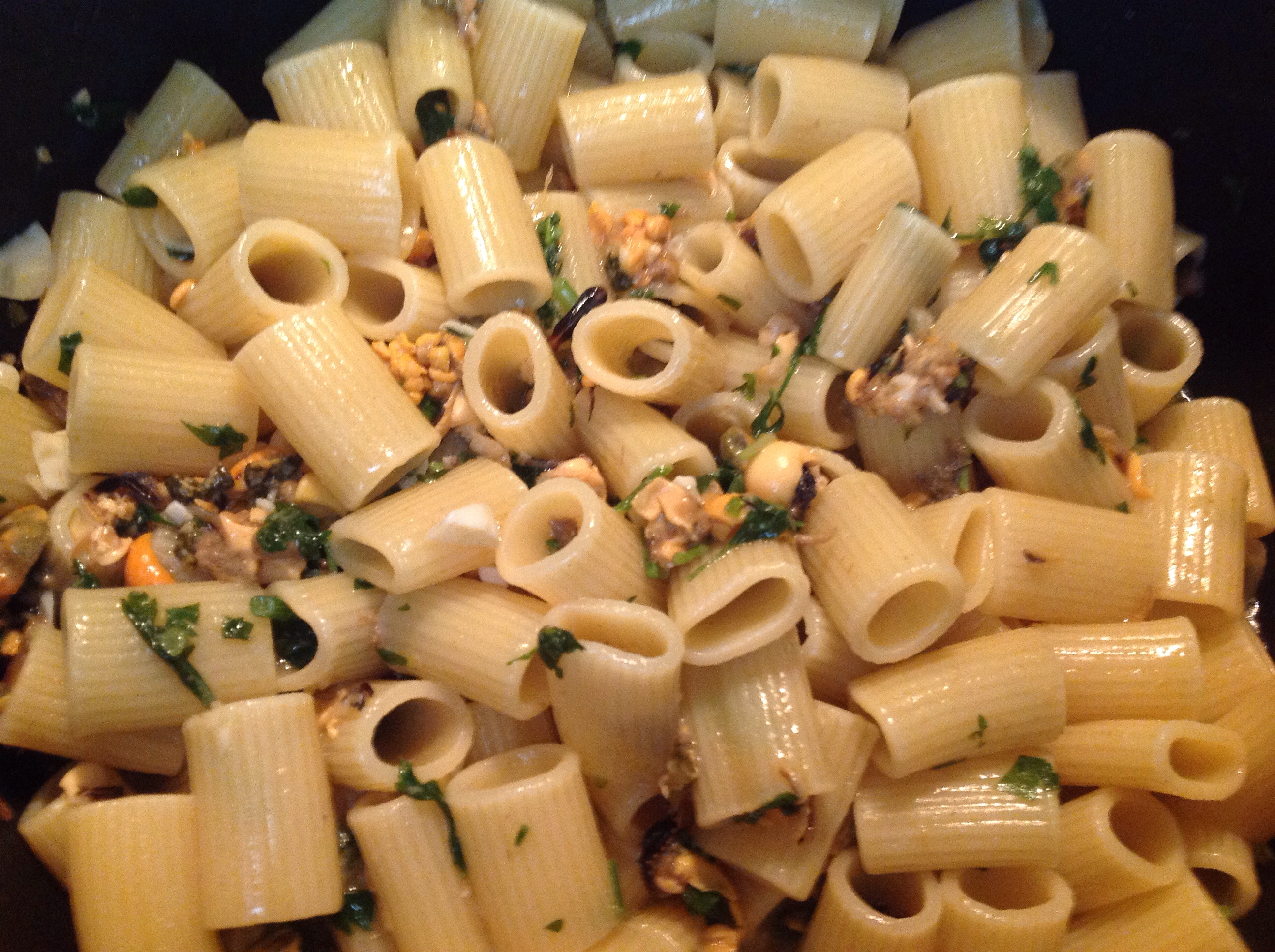 MEZZE MANICHE CON SUGO DI COZZE AL VERDE (alla mia maniera)