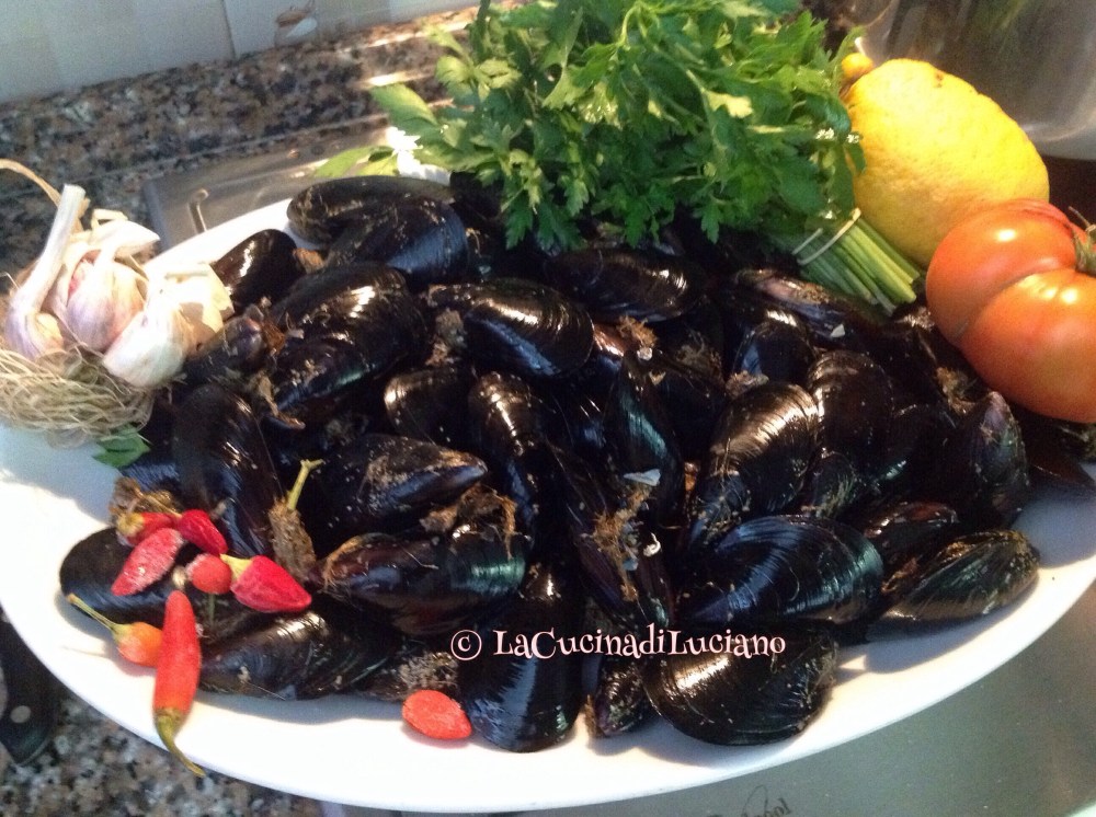 Lava bene le cozze senza levare lo spago che toglierai solo al momento dell’apertura.