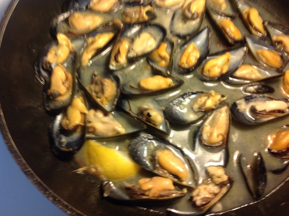 Quando le cozze sono tutte nel tegame, aggiungi un po di liquido e spegni il fuoco