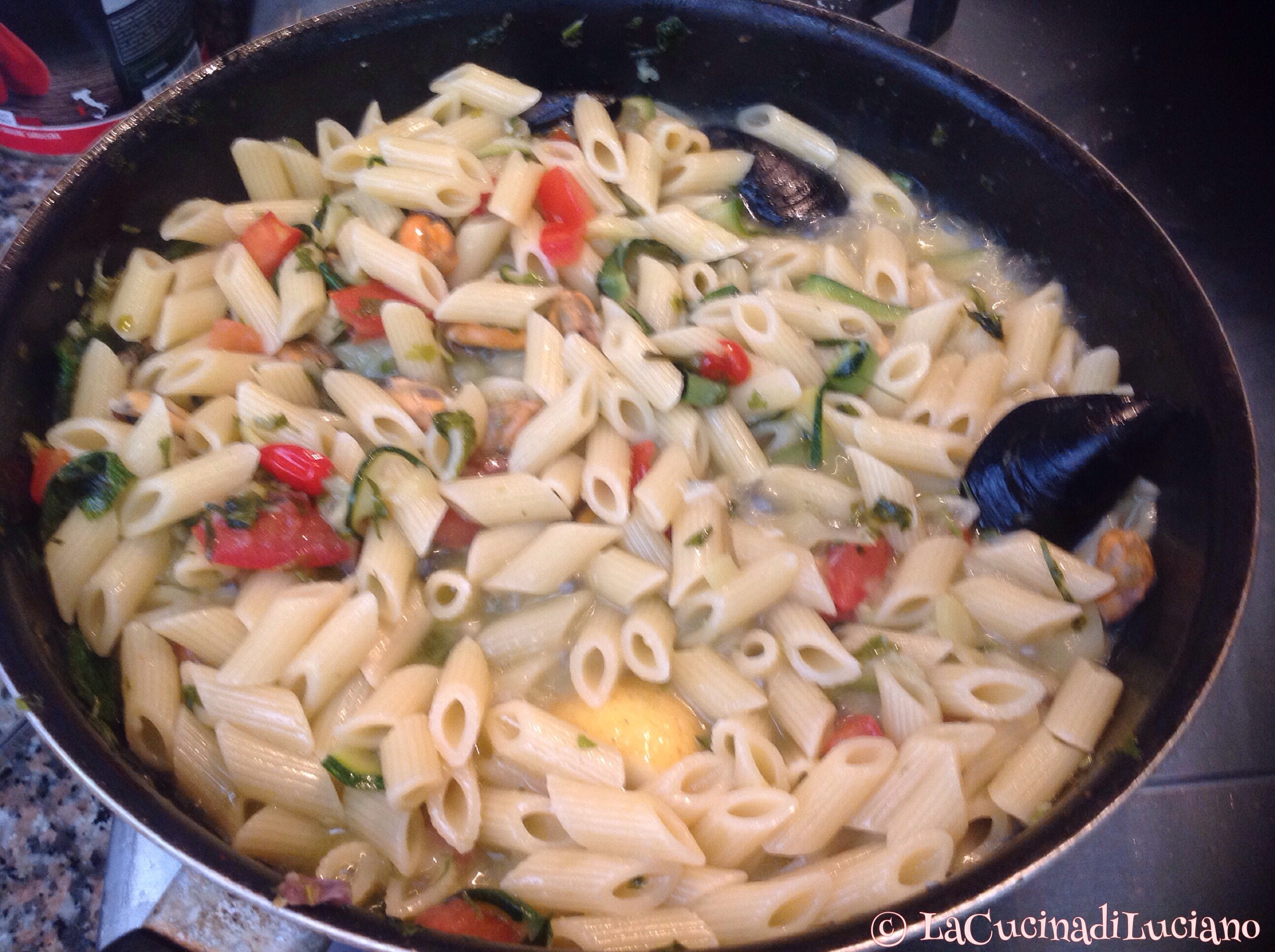 MEZZE PENNE CON LE ZUCCHINE E COZZE AL VINO, SEMPLICI , FRESCHISSIME veloci e gustose, ..(. una bomba.. provale..)