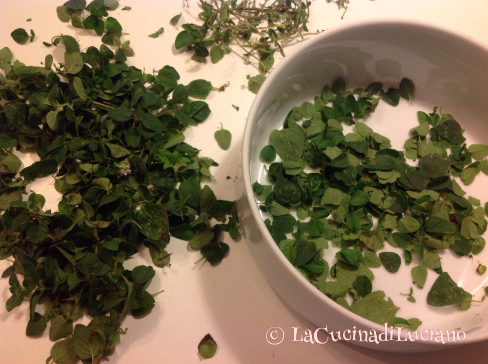 5. 30 gr. di origano vulgaris (solo le foglie senza il picciolo sminuzzate finissime con coltello